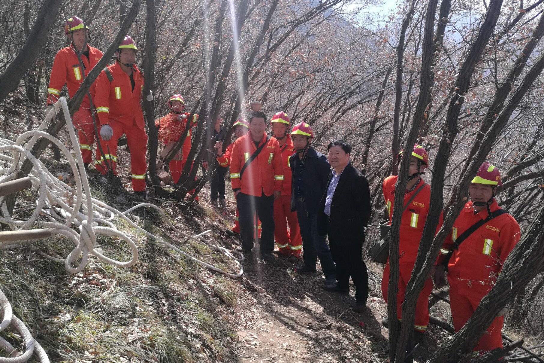 ? ? 該項目由公司所屬西安地質(zhì)災(zāi)害智能監(jiān)測預(yù)警技術(shù)服務(wù)中心承擔(dān),工區(qū)山高坡陡、荊棘密布,給勘查工作帶來極大困難。公司領(lǐng)導(dǎo)一行踏著崎嶇的山路來到施工現(xiàn)場,聽取項目負(fù)責(zé)人工作匯報,認(rèn)真查看現(xiàn)場施工安全狀況,仔細(xì)詢問施工管理和進度,并強調(diào),要嚴(yán)格加強現(xiàn)場安全教育管理,保證工作質(zhì)量和安全的前提下推進施工進度,克服一切困難,確保勘查工作順利進行。