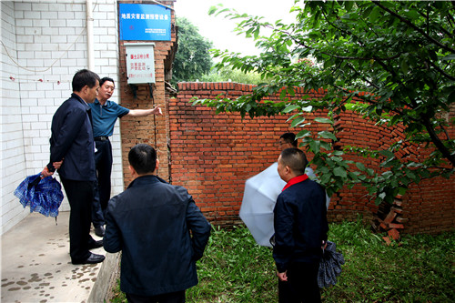 ? ? 檢查組對王家坡地質災害隱患4處監測點進行了實地查看,邊查看邊聽取物化探隊領導和西安地質災害智能檢測預警技術服務中心關于監測情況匯報,并提出有關注意事項。