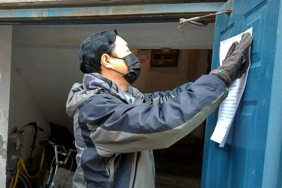 ??? 逐戶排查登記,把《關于做好新型冠狀病毒感染的肺炎疫情防控工作的緊急通知》送到居住在院內的150多戶家中;逐戶摸排登記發(fā)熱、湖北返回、密切接觸感染者等3類人員。對當前疫情防控進行宣傳,堅信黨的領導,不聽謠、不信謠、不傳謠,引導職工眾志成城,抗擊疫情。