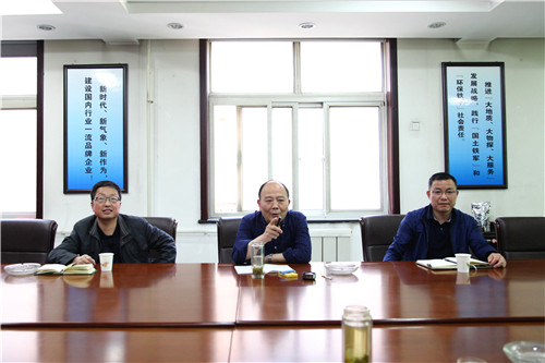 ??? 4月14日下午,地礦集團公司總工程師王根寶一行來我公司檢查指導半工業試驗園區及地質災害智能監測預警系統平臺建設及運行情況,并與公司班子成員及地災監測中心相關人員進行座談。??