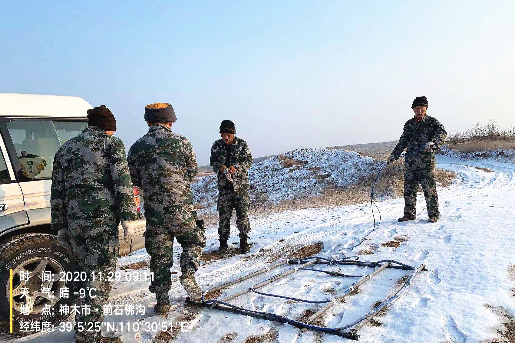 ? ? 工區(qū)位于榆林市神木市店塔鎮(zhèn)楊伙盤村,工作面積8.85平方公里。區(qū)內(nèi)溝壑縱橫,天氣較冷,氣溫達(dá)到零下12度,給施工帶來很大困難。為盡快完成施工任務(wù),工程物探公司干部勇于擔(dān)當(dāng)、率先垂范,廣大職工甘于吃苦、無私奉獻(xiàn),克服了低溫帶來的諸多影響,加緊施工,力爭早日完成工作任務(wù)。