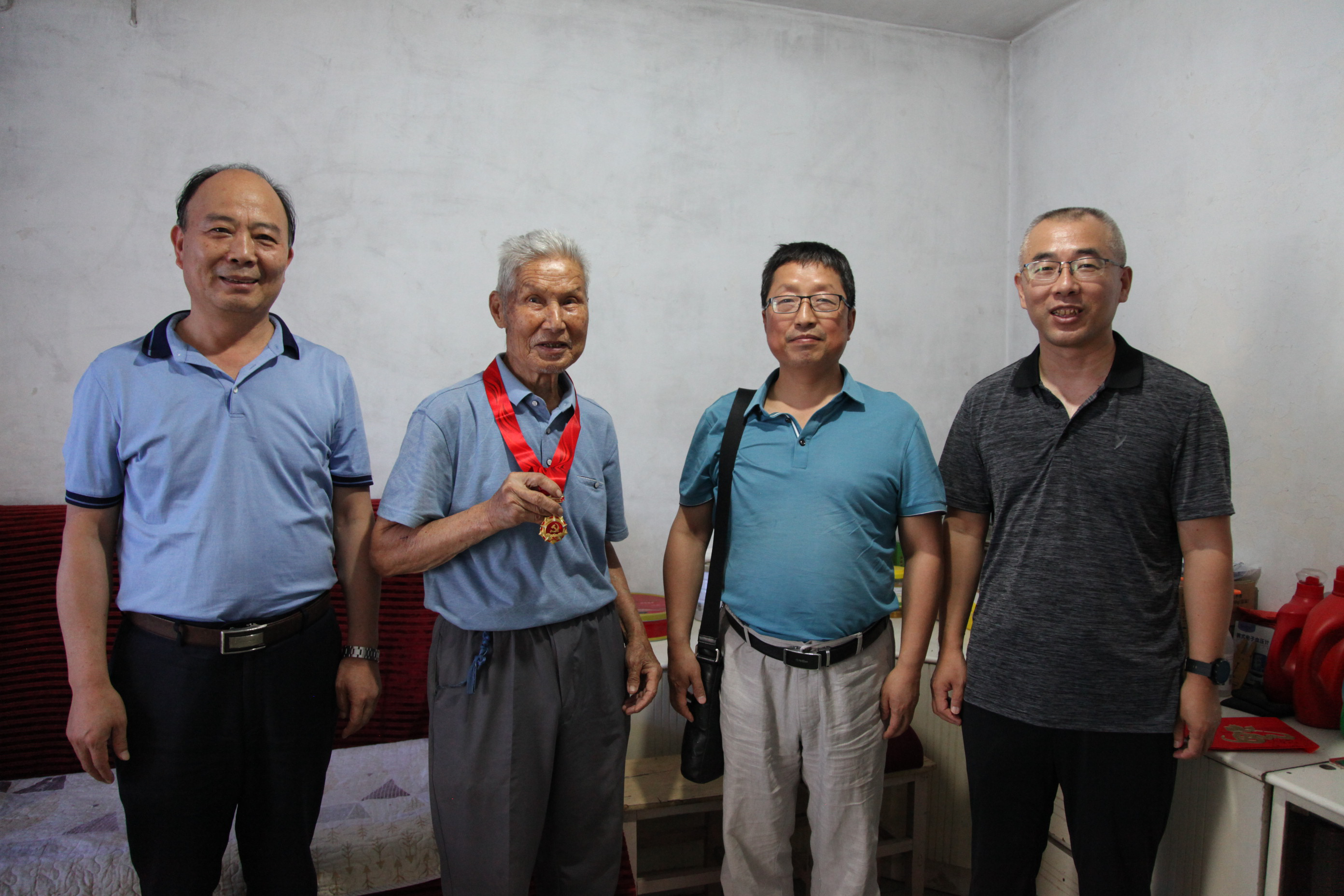 ? ? 6月23日,陜西地礦集團有限公司總工程師王根寶,在總工辦主任李方周同志、物化探隊黨委書記李新勝同志的陪同下,前往物化探隊離休老黨員家中,看望慰問67年黨齡、87歲高齡的許俊賢同志,并為他頒發“光榮在黨50年”紀念章,王根寶同志對他兢兢業業為黨工作、為人民服務付出心血和汗水致以深深的敬意,并親切囑托他保重身體、安享晚年。許俊賢同志難掩激動之情,感到無比光榮和自豪,還感謝黨中央對老黨員的尊重、關心、愛護,并堅定表示聽黨話、感黨恩、跟黨走。