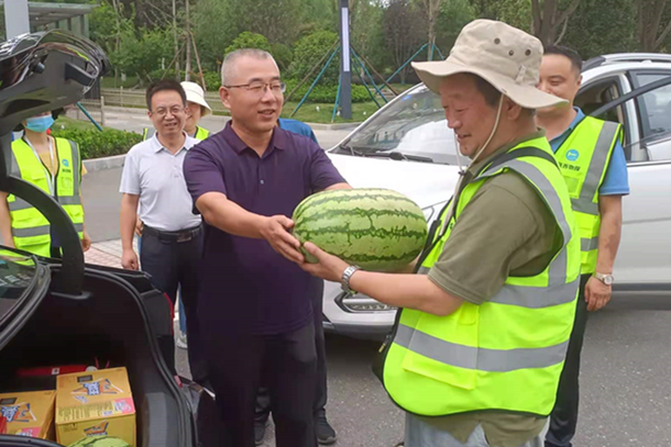 ??? 李新勝一行為一線職工送去了西瓜、飲料等夏季防暑降溫物品,同時鼓勵大家繼續發揚不怕苦、不怕累、攻堅克難的地質精神,為公司的發展貢獻力量。?