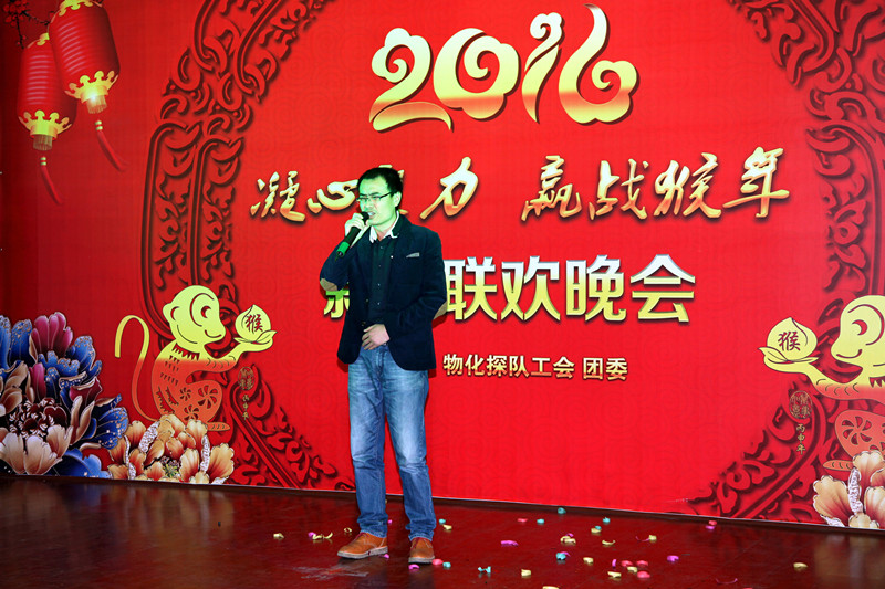 ??? 隊(duì)長王新坪致新春賀詞,他說:2015年在總公司的正確領(lǐng)導(dǎo)下,物化探隊(duì)創(chuàng)新發(fā)展,各項(xiàng)工作取得了顯著的成績。2016年按照總公司的新要求和物化探隊(duì)“大地質(zhì) 大物探 大發(fā)展”的經(jīng)營思路,凝心聚力,攻堅(jiān)克難, 贏戰(zhàn)2106。全體干部職工一定要奮力搏擊,敢于擔(dān)當(dāng),攜手同心,用智慧和汗水共譜物化探隊(duì)新篇章!王新坪代表物化探隊(duì)領(lǐng)導(dǎo)班子,祝全隊(duì)職工在猴年來臨之際,身體健康,闔家幸福,生活美滿,事業(yè)有成。