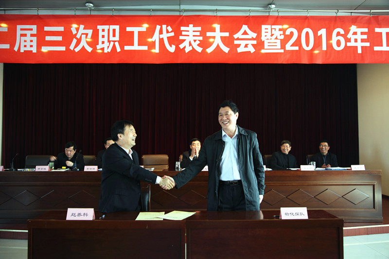 ? ? 會上,王新坪與各單位、各部門簽訂了2016年經營目標責任書、安全生產責任書,賀志銀與各單位、各部門簽訂了黨風廉政建設責任書,對2015年度先進集體和先進個人進行了表彰獎勵。