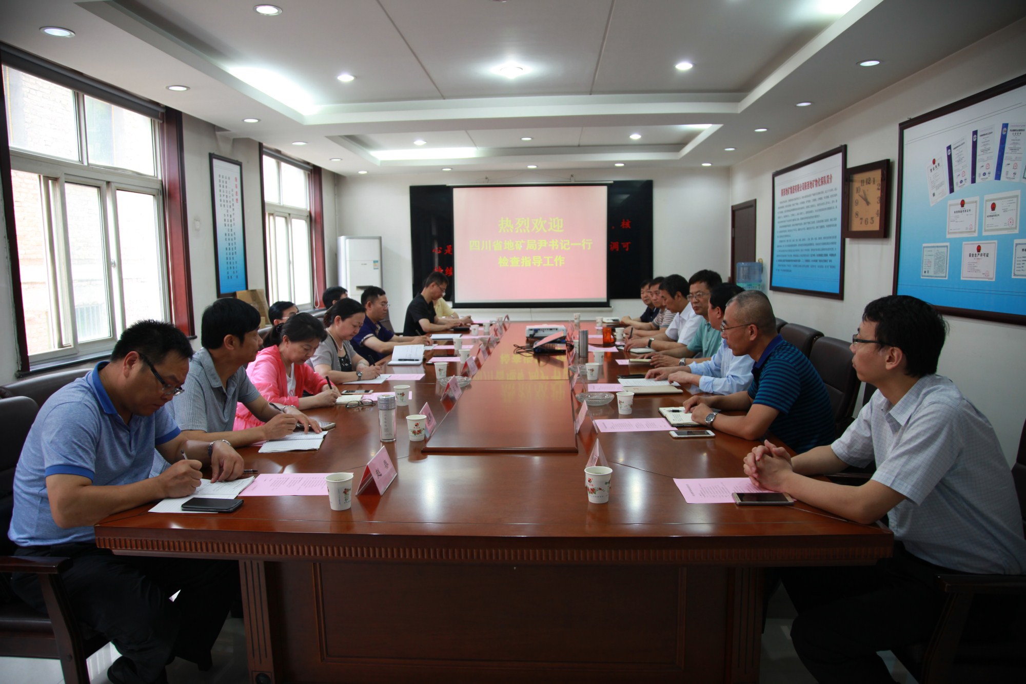 四川省地礦局黨委副書記尹江川一行來物化探隊進(jìn)行工作調(diào)研與交流